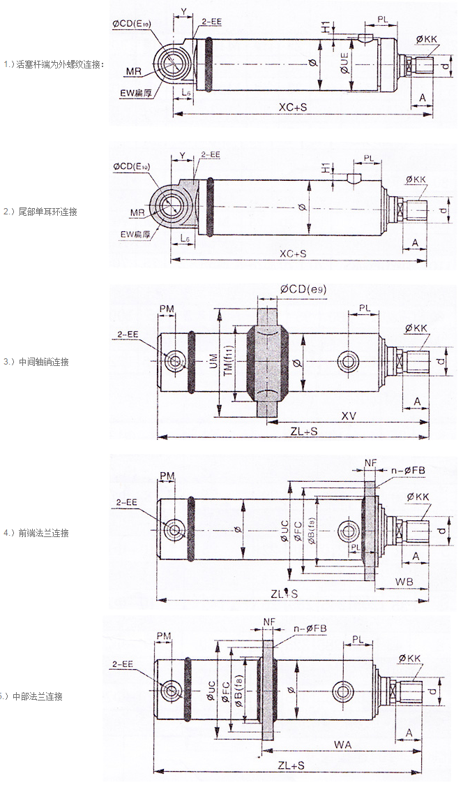 本系列液壓缸具有結構簡單、工作可靠、裝拆方便、易于維修,可帶緩沖裝置及安裝型式多樣等特點,適用于工程機械、起重、運輸機械及礦山機械的液壓傳動。工作壓力16MPa,缸徑40~250mm。