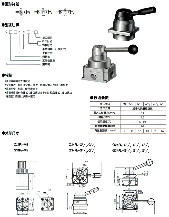 人控閥系列(Q235JR5系列二位三/四通推拉式換向閥)