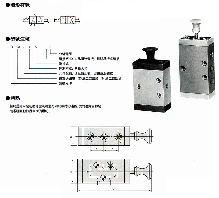 人控閥系列(Q235JR5系列二位三/四通推拉式換向閥)