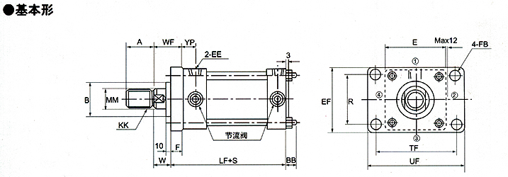 | 注:圖示中①-管節口 ②-可調節流閥 ③、④-單向閥 |